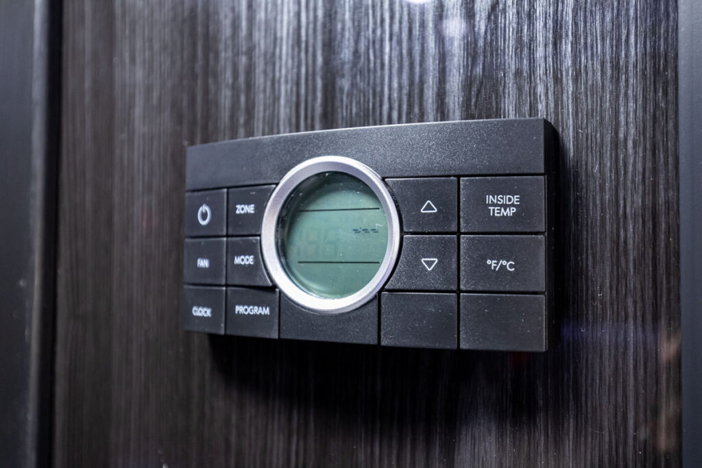 - A/C Heating Systems: The entire coach was insulated by Nix Coach Interiors before the interior was installed